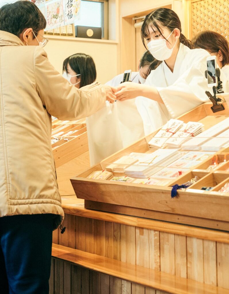 巫女さんは、参拝者と直に接する