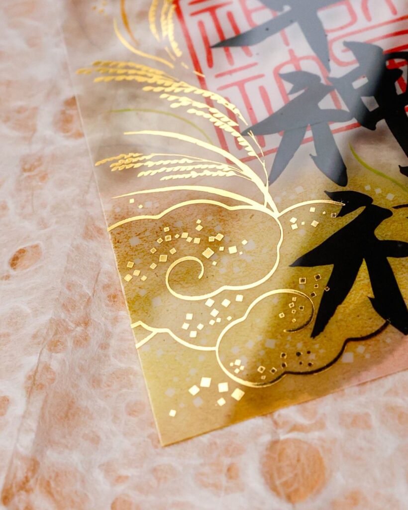 赤色ホログラム箔押しにて奉書した